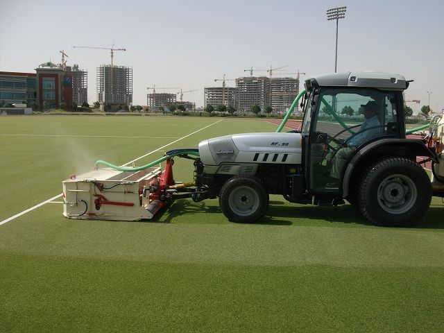 Zur Intensiven Naßreinigung von Vollkunstrasenflächen mit gleichzeitiger Schmutzwasseraufnahme in einem Arbeitsgang haben wir unseren Kunstrasenreiniger SKR für Kompakt- und Schmalsuprschlepper